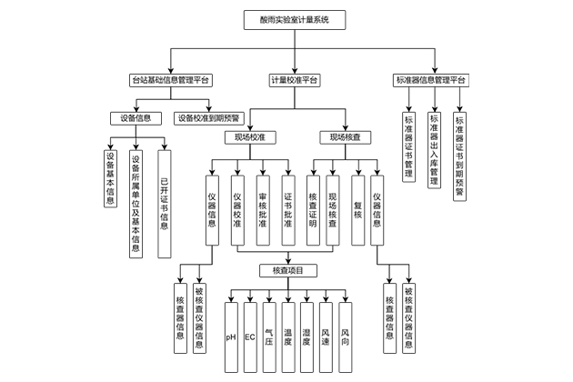 酸雨实验室计量现场校准核查信息系统可实现自动气象站雨量传感器和数据采集器等现场校准,以及校准后的气压、温度、湿度、风速、风向、pH、EC等传感器的现场核查,数据自动处理,并支持打印校准证书和数据记录表输出等功能。