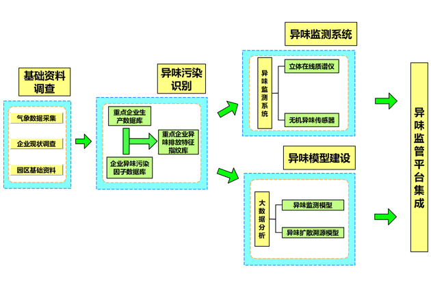 工业园区是区块经济发展和产业集群升级的重要载体,也是工业大气污染控制的主战场,由于恶臭排放导致的居民和企业冲突越来越多,恶臭整治已经成为了一项涉及到社会稳定和谐的重要工程,而恶臭排放的时效性、不确定性,又导致了环保部门的取证难、执法难。