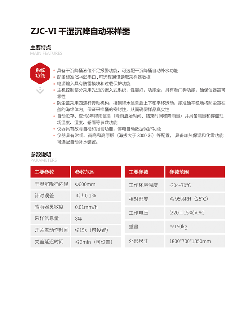 本仪器采用双桶四联杆结构,适用于各级辐射监测站和科研院所有选择性地采集干湿性沉降物,进行大气中辐射量的监测和研究
